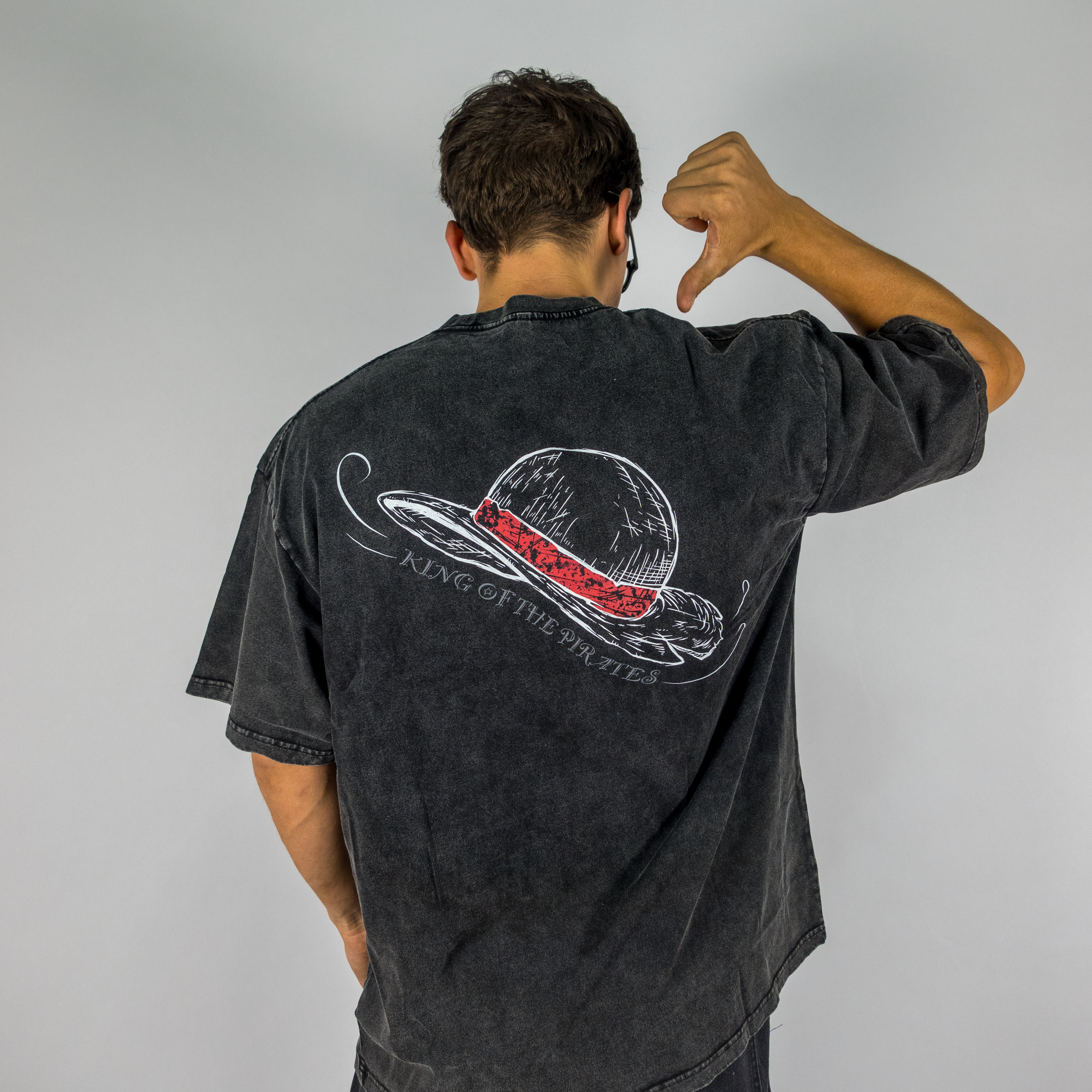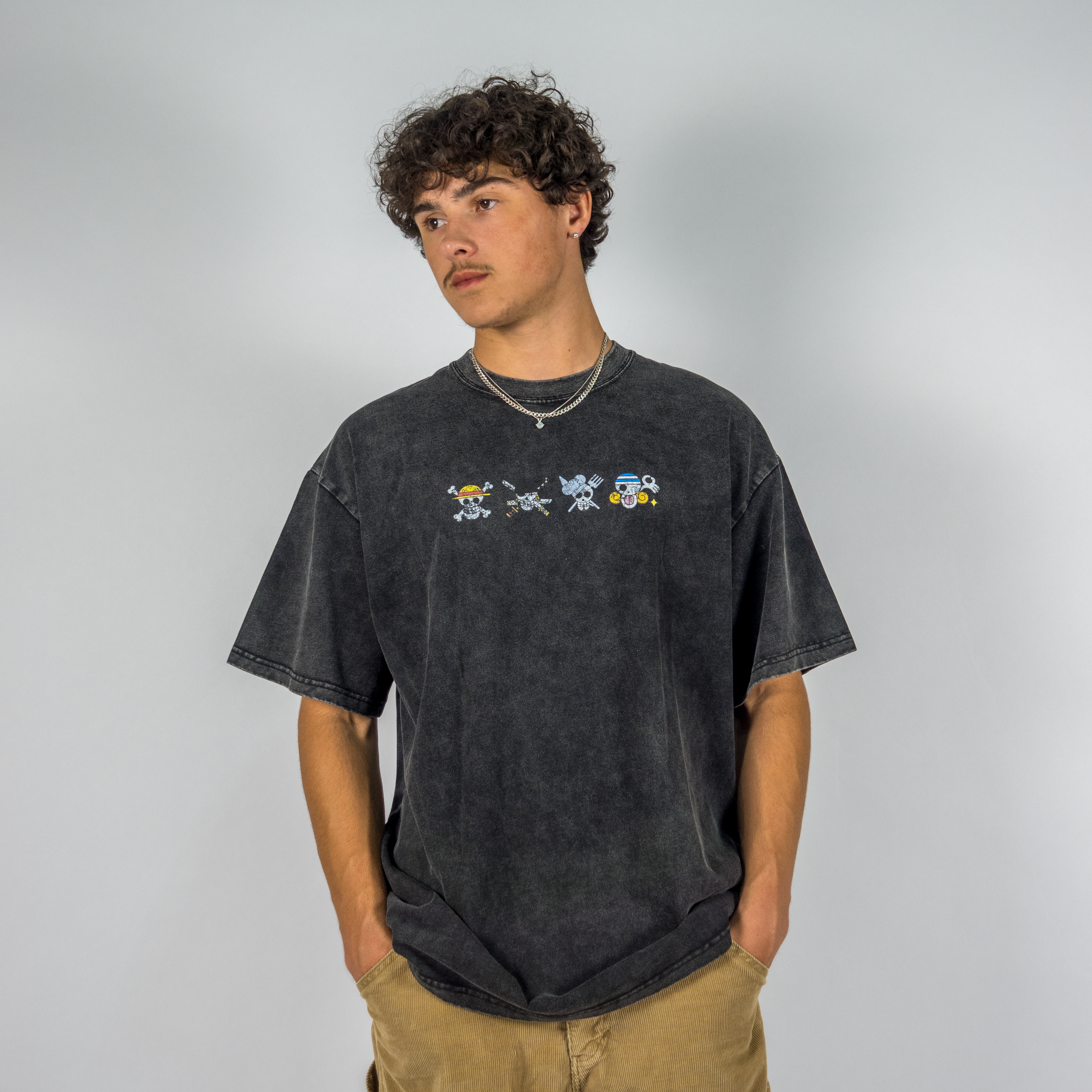 Straw Hat Oversized Acid Wash Anime Tee