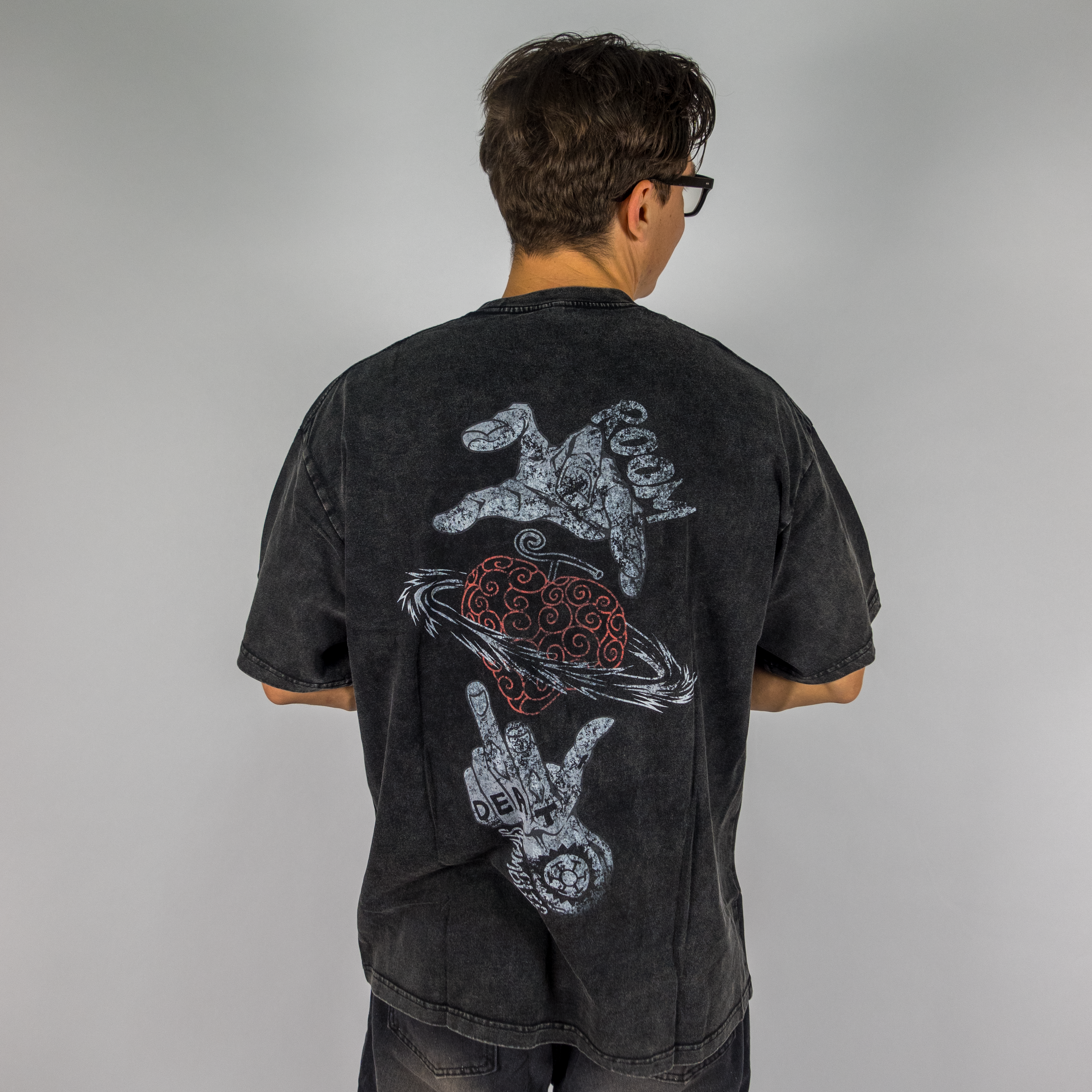 The Flamel Oversized Acid Wash Anime Tee (Back Print)
