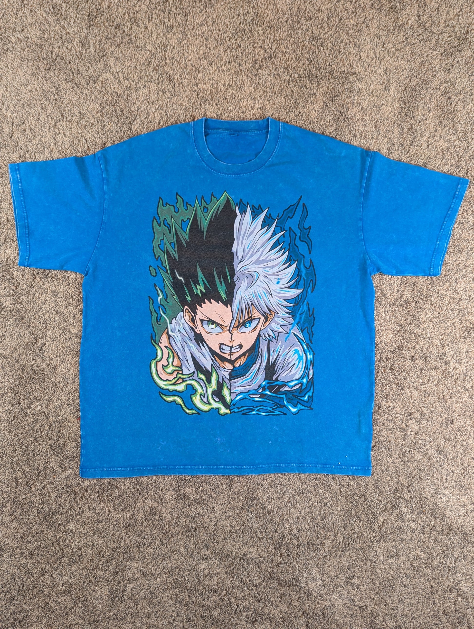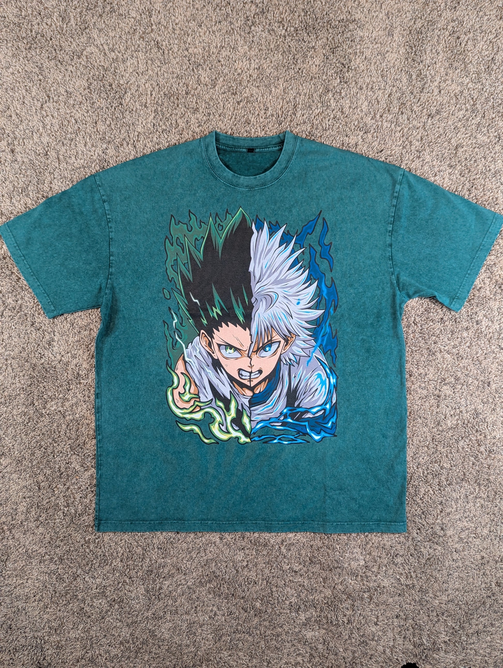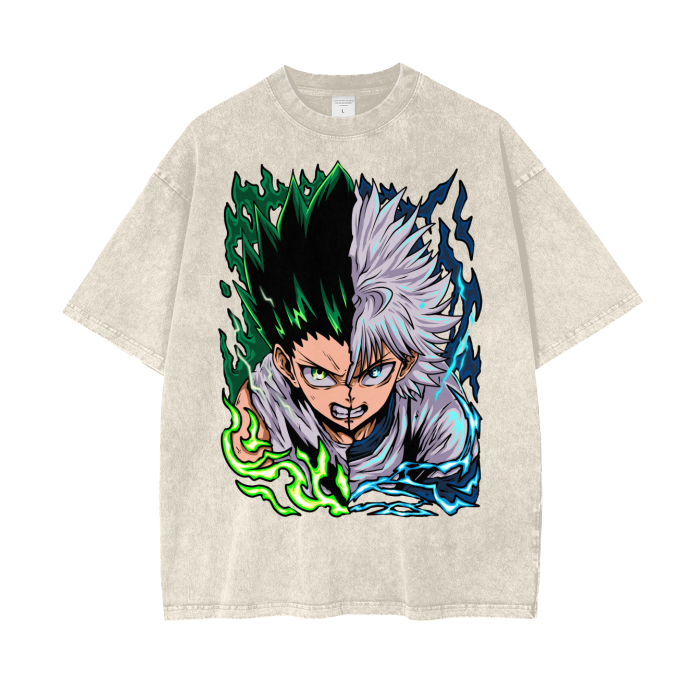 Gon and Killua Acid Wash Oversized Anime Tee (Front Print)