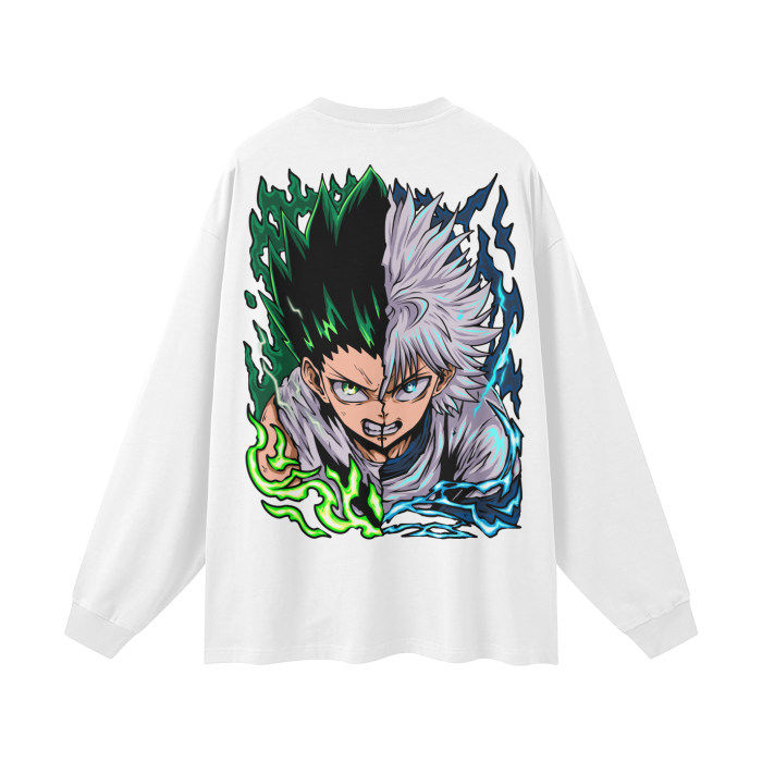 Gon and Killua Long Sleeve Anime Tee (Back Print) (White)